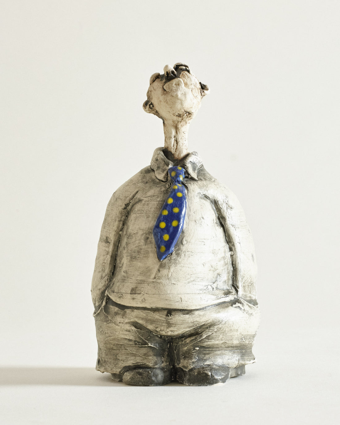 Ceramic stoneware figure, wheel thrown , altered and sculpted, reflecting on the difference between self...