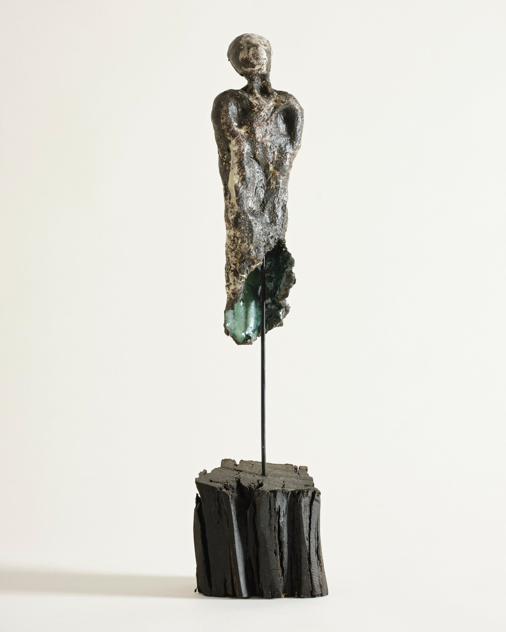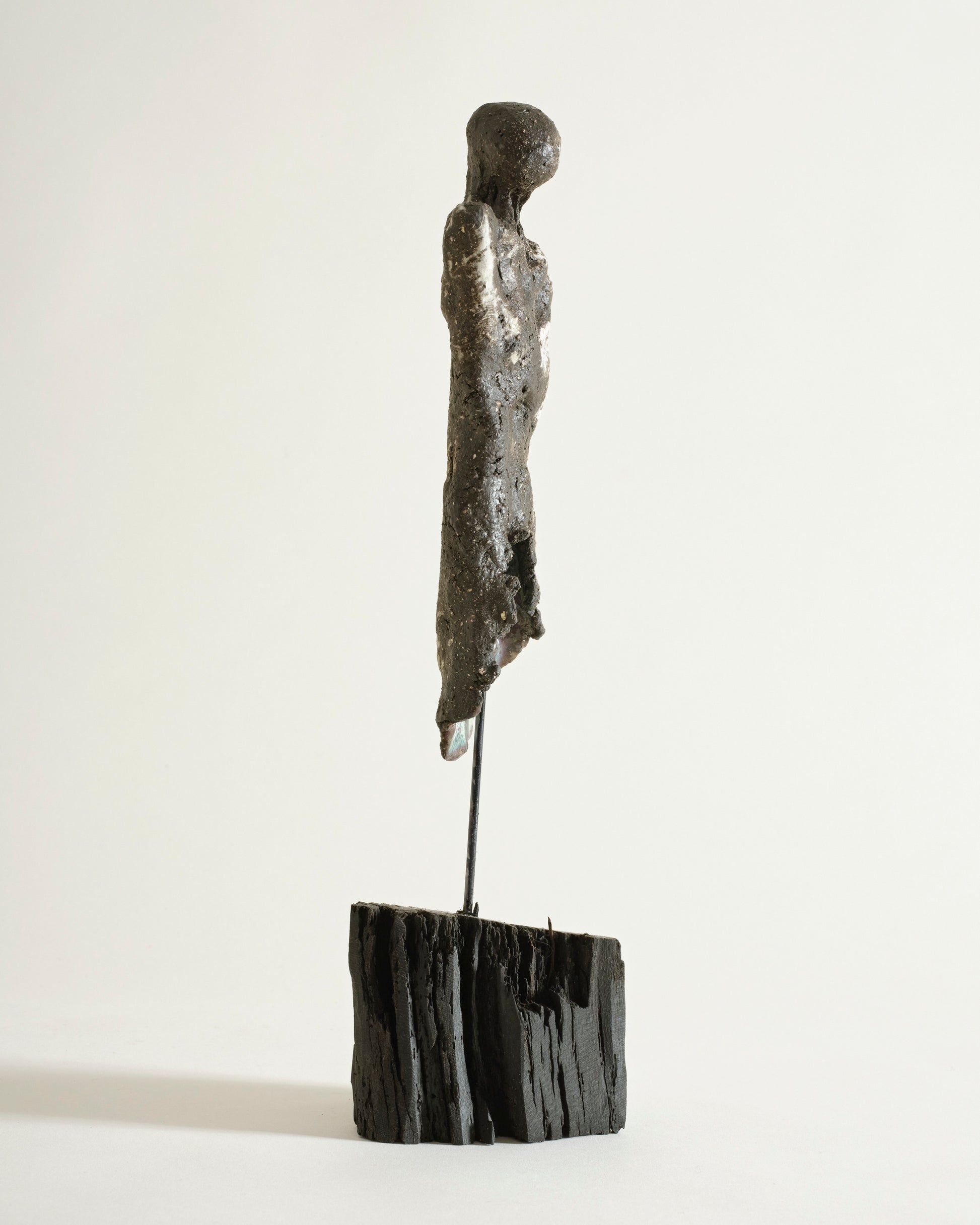 Ceramic stoneware sculpted. Glazed interior oxide wash exterior. Mounted on bog oak, a wood preserved in the Fermanagh bog for over 5000 years.